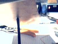 stukje haal je eraf zodat de ‘haartjes’ koperdraad en de